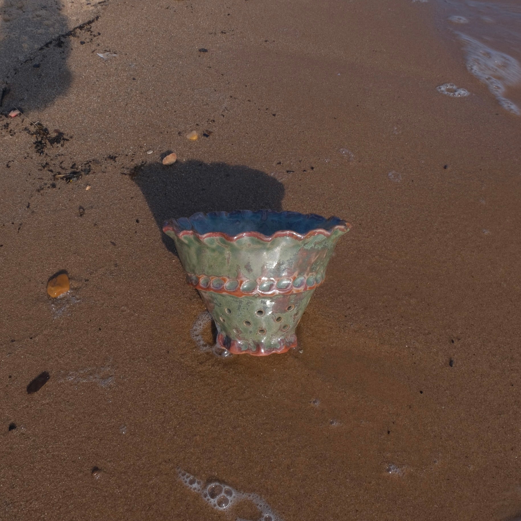 berry bowl with strainer holes, also works to keep garlic, tomatoes etc fresh on your counter