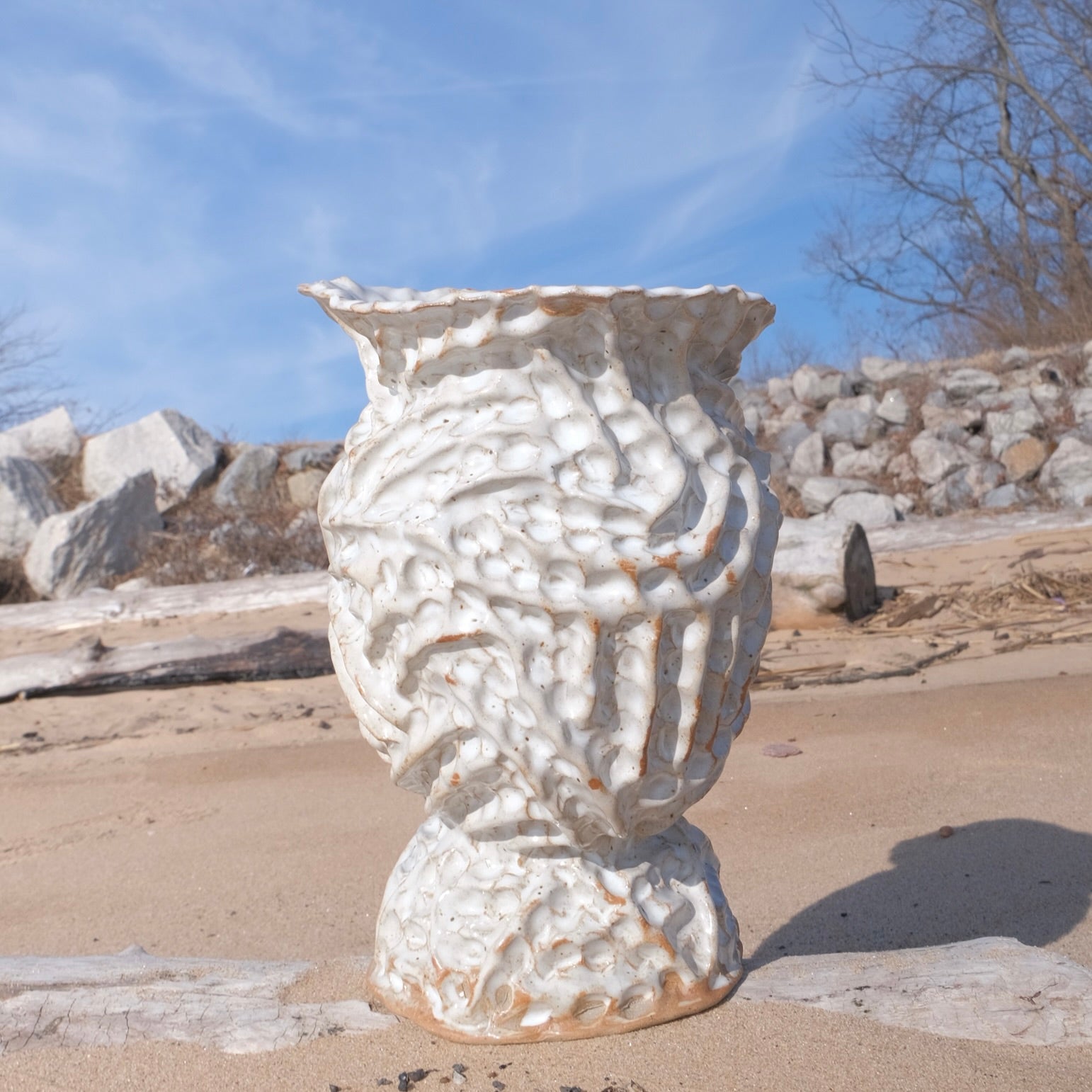 white pinched ridge vase